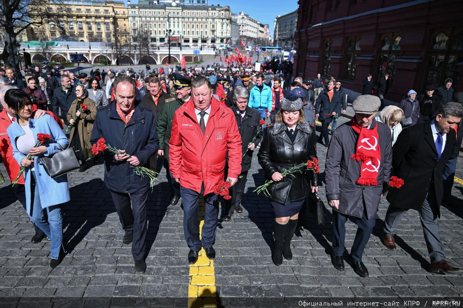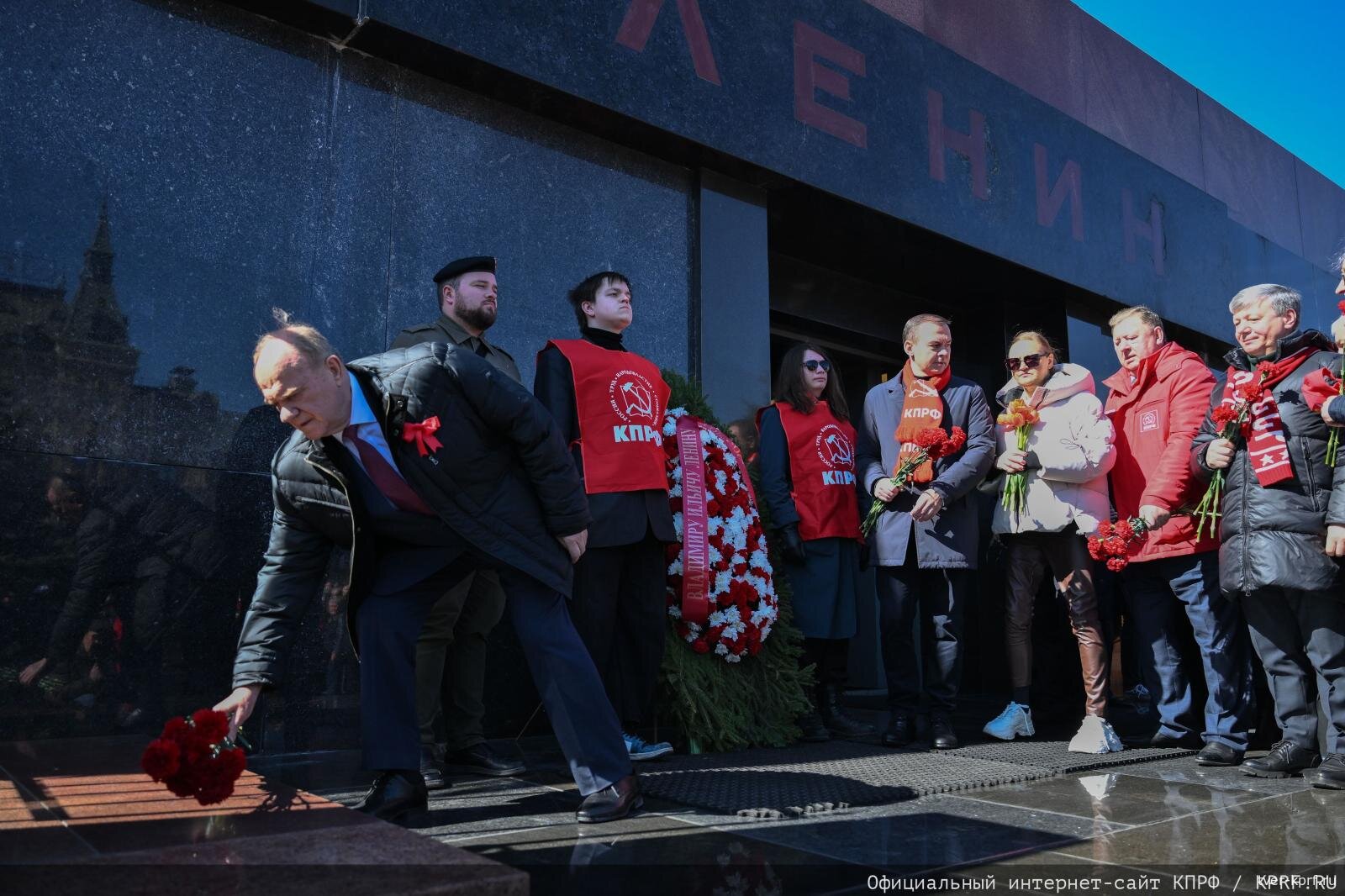 В среду, 22 апреля, в 156-ю годовщину со дня рождения Владимира Ильича Ленина, Центральный Комитет КПРФ, депутатская фракция партии в Государственной Думе ФС РФ, Общероссийский Штаб протестного движения, МГК и МК КПРФ, ЦК Ленинского комсомола, общественные организации левого народно-патриотического движения, вместе с жителями столичного региона провели в Москве на Красной площади торжественную акцию возложения венков и цветов к Мавзолею Ленина.
