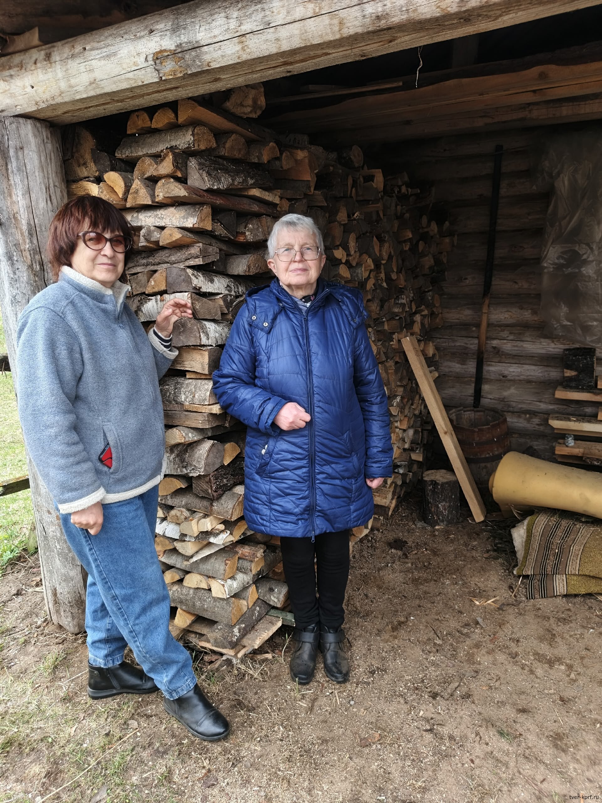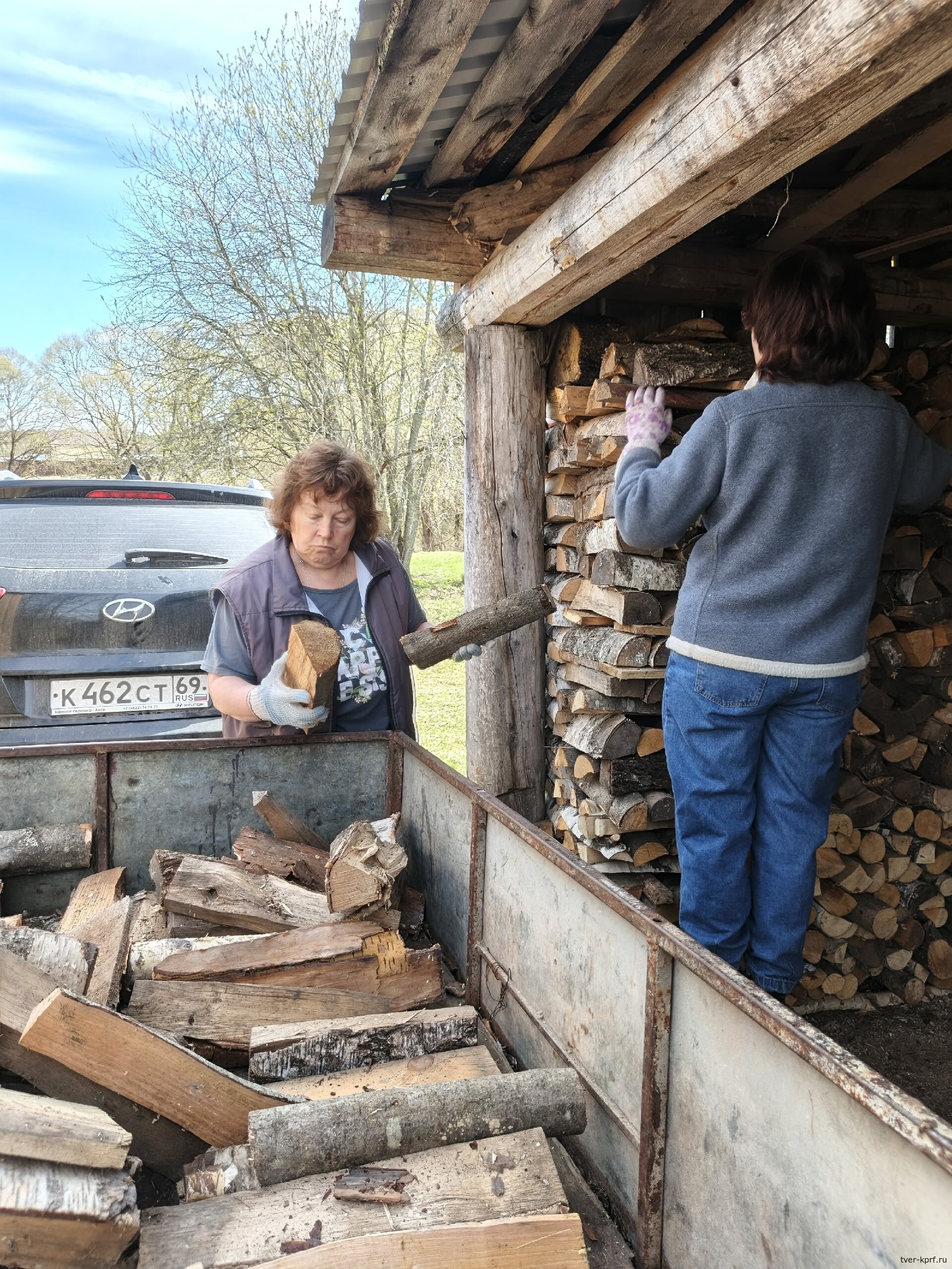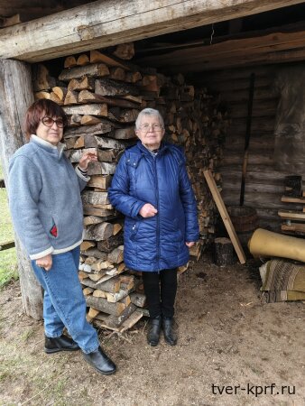 Лидия Васильевна Бубенчикова и Надежда Георгиевна Носова сложили поленницу дров.