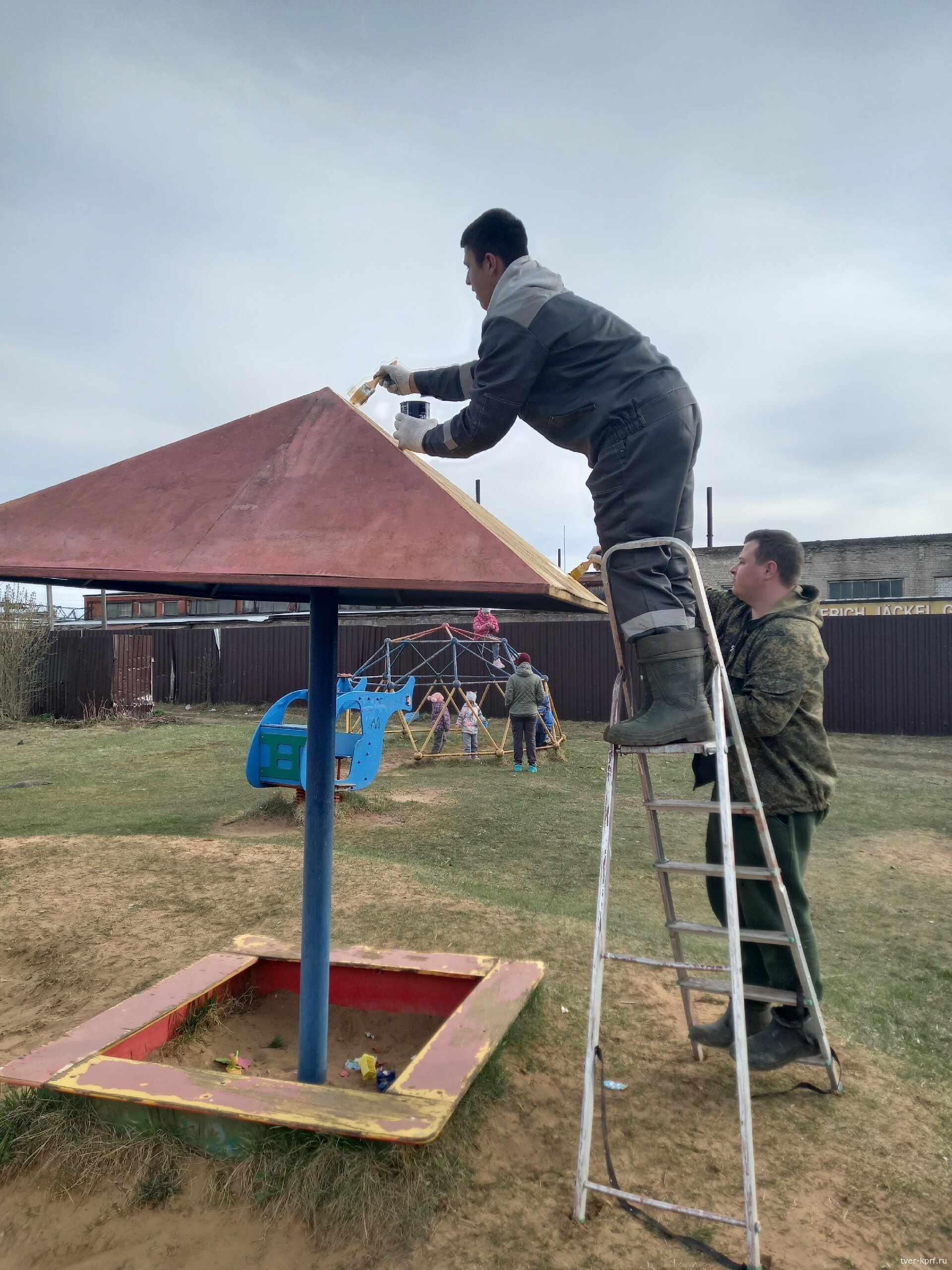 Результат выполненных работ порадовал, детская площадка сверкает новыми красками и чистотой!