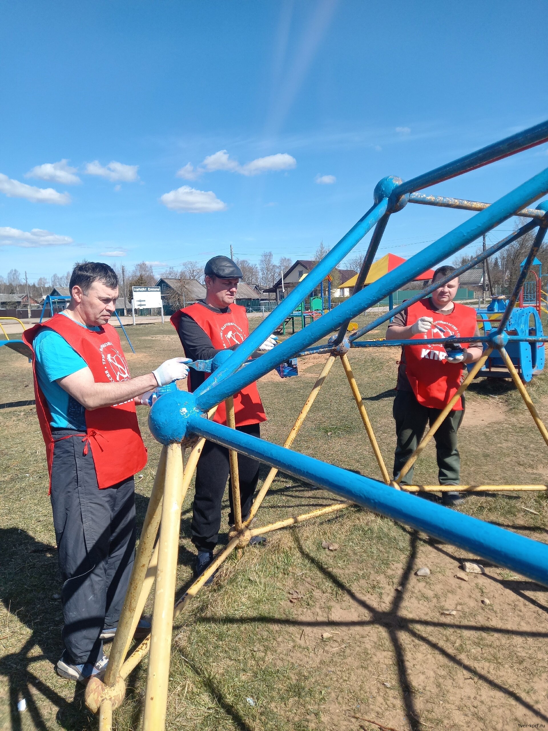 22 апреля по инициативе депутатов Думы Селижаровского муниципального округа Алексея Журавлева и Натальи Поликахиной состоялся субботник на детской площадке в п.Селижарово, ул. Пушкина (площадка в РТП).
