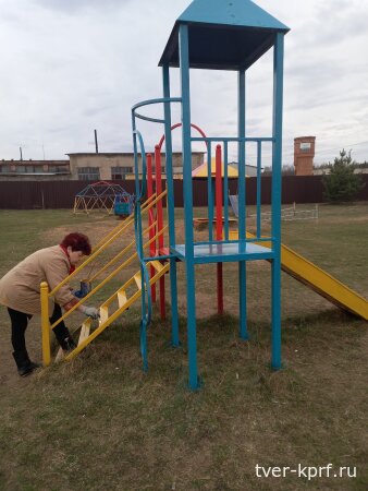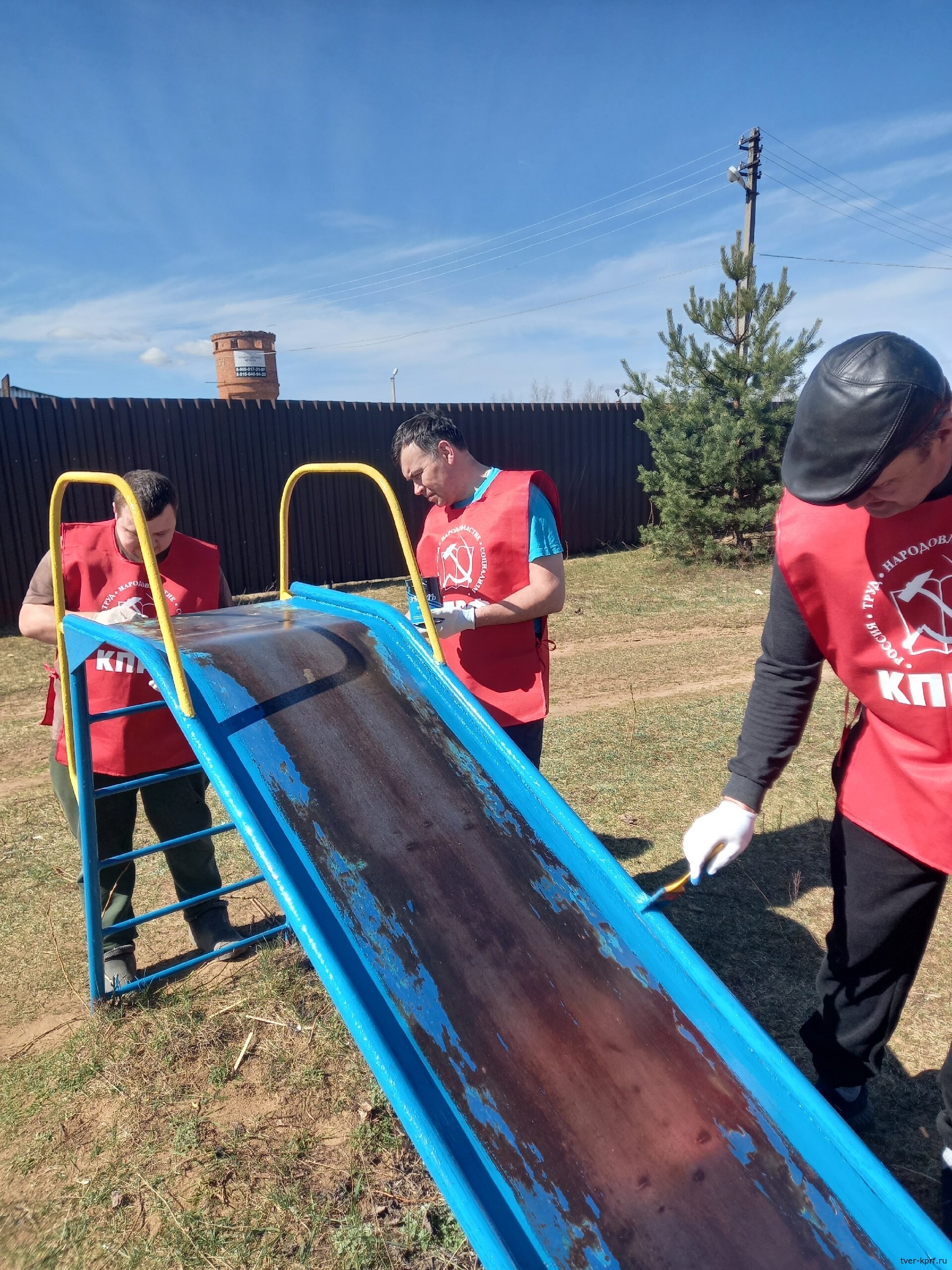 Селижаровские коммунисты совместно с активными жителями организовали субботник на детской площадке