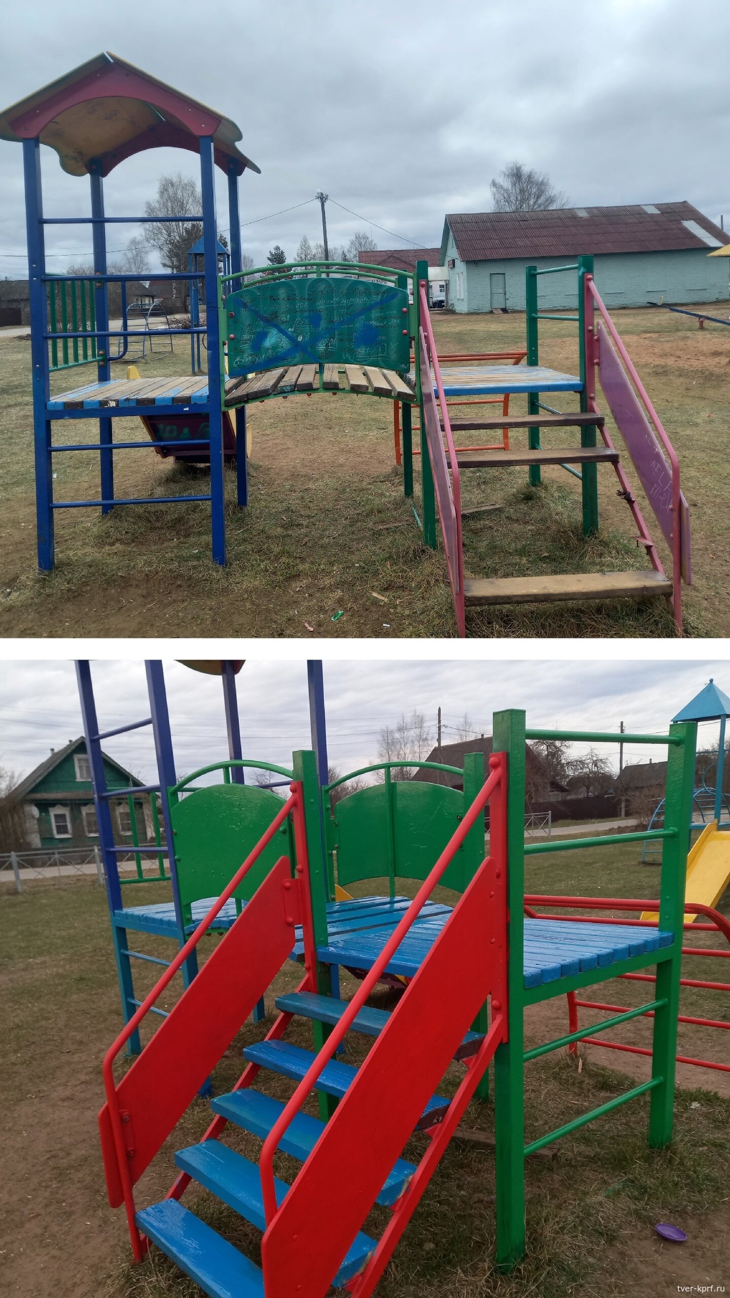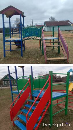 Активисты партии и неравнодушные жители приступили к работе. Были установлены недостающие ступеньки на игровом комплексе, очищены от старой краски и покрашены все элементы детской площадки и скамейки.