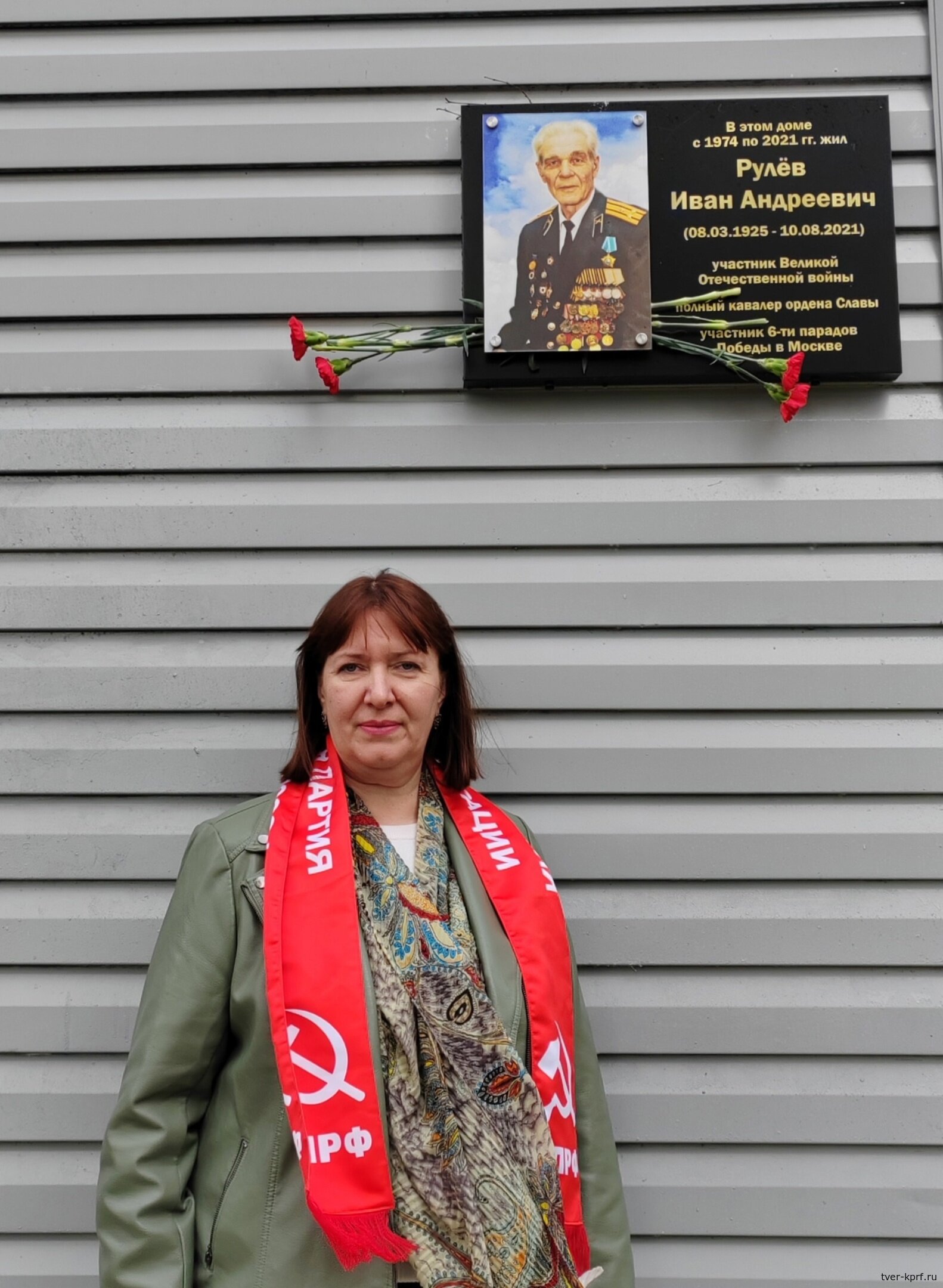 Секретарь Тверского обкома КПРФ Евгений Рассказов и главный редактор газеты "Пролетарская Правда" Ольга Лучникова почтили память И.А. Рулева,возложив цветы к мемориальной доске. Иван Андреевич былкоммунистом, членом КПРФ, а в 2018 году был доверенным лицом кандидата в президенты РФ Павла Грудинина.Три степени ордена Славы И.А. Рулёва приравнены к Золотой Звезде Героя Советского Союза.В 2019 году Президент РФ подписал указ о награждении Ивана Андреевича Рулёва орденом Почёта. К 95-летию Ивана Андреевича в Конаково был издан красочный буклет о его жизненном и трудовом пути.