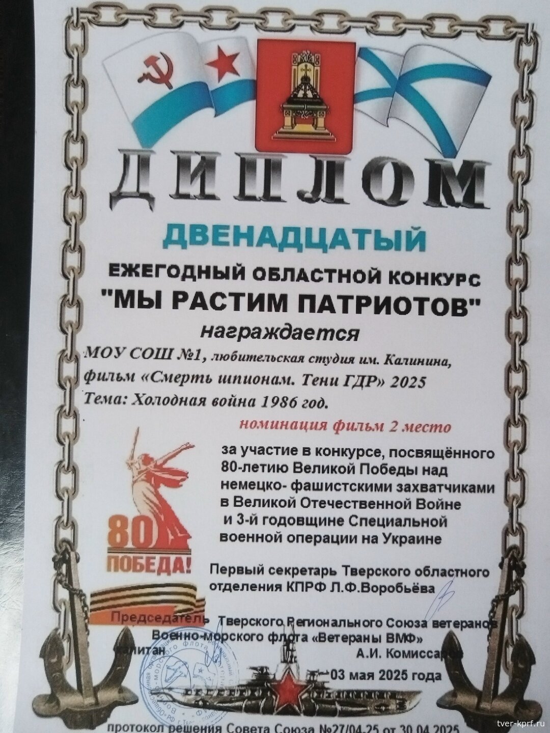Комсомольцы Пролетарского отделения ЛКСМ г. Твери завершили съёмки второй серии сериала "Смерть шпионам: тени ГДР". Премьерный показ обеих серий состоится 9 октября в 18:10 в помещении областного комитета КПРФ по адресу: ул. Ипподромная, д. 7.