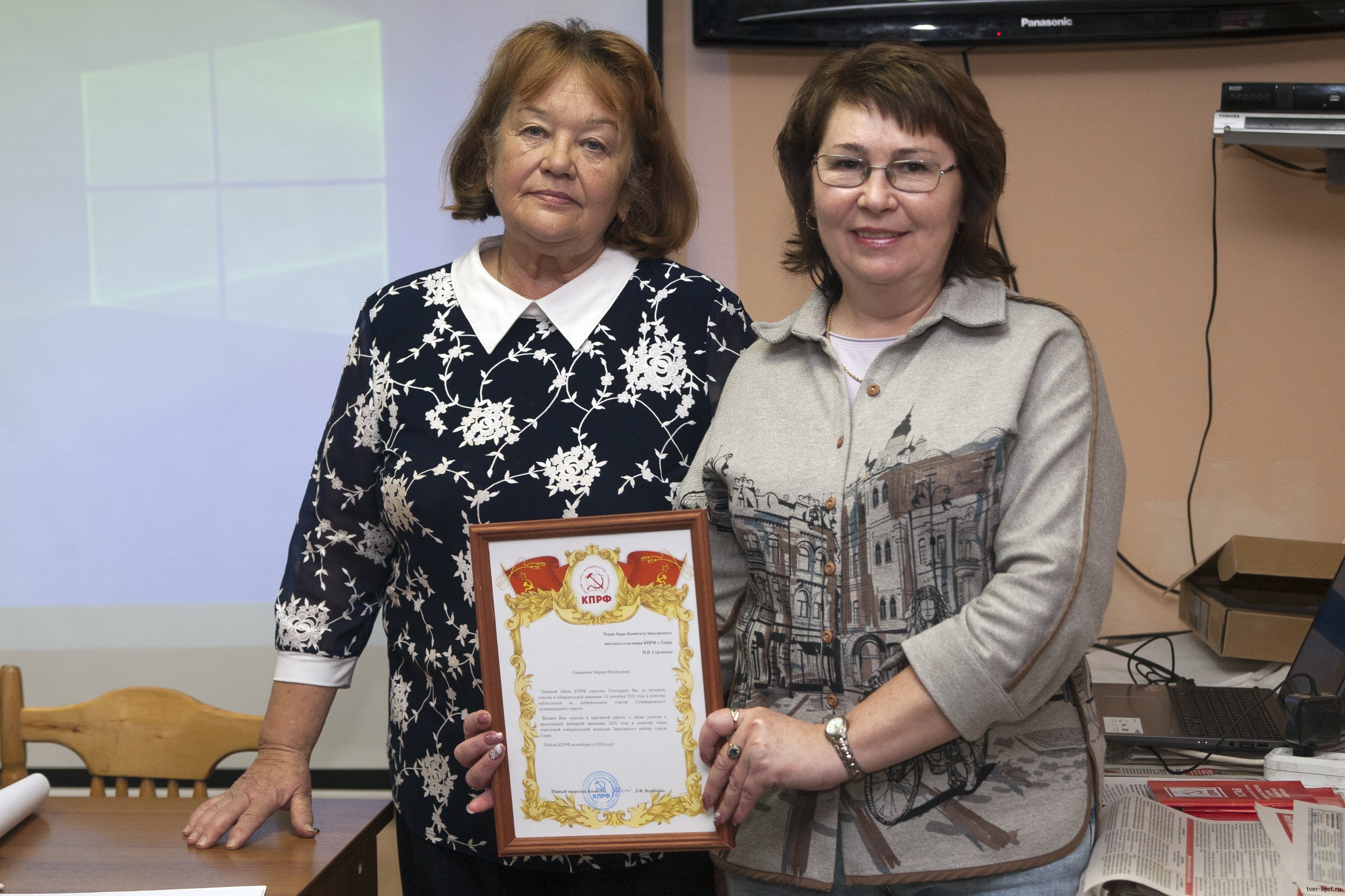 Л. Ф. Воробьева поблагодарила коммунистов, принимавших участие в выборах как в качестве кандидатов, так и в качестве членов УИК и наблюдателей. Большая группа коммунистов была награждена Благодарственными письмами Тверского обкома КПРФ.
