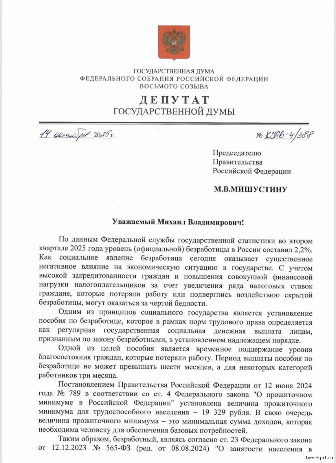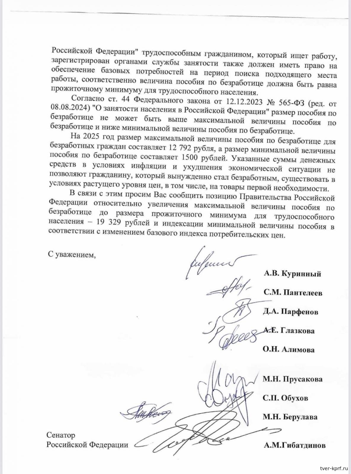 Депутаты Государственной Думы от КПРФ и сенатор от Ульяновской области Айрат Гибатдинов направили обращение председателю Правительства РФ Михаилу Мишустину с предложением повысить максимальный размер пособия по безработице до уровня прожиточного минимума — 19 329 рублей.