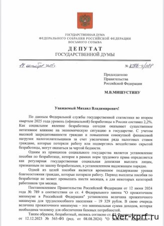Парламентарии отметили, что действующий максимум пособия, установленный на 2025 год, составляет 12 792 рубля, а минимальный размер — 1 500 рублей. В условиях инфляции и роста цен эти суммы, по словам авторов обращения, не позволяют гражданину, временно оставшемуся без работы, обеспечить даже базовые потребности.