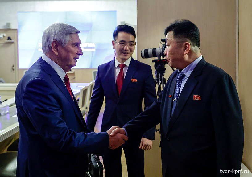 В беседе приняли участие со стороны КНДР: Чрезвычайный и Полномочный Посол КНДР в Российской Федерации Син Хон Чхоль и член парламентской группы дружбы «КНДР – Россия» Верховного народного собрания КНДР Цой Сок Чхоль.