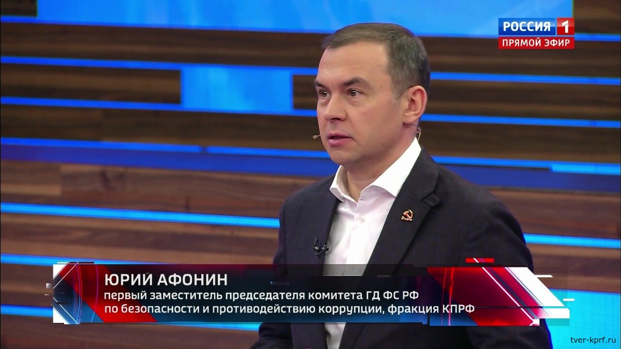 Первый заместитель Председателя ЦК КПРФ Ю.В. Афонин принял участие в программе «60 минут» на телеканале «Россия-1». В студии обсуждался ход переговоров об урегулировании российско-украинского конфликта и подготовка к встрече президентов России и США.