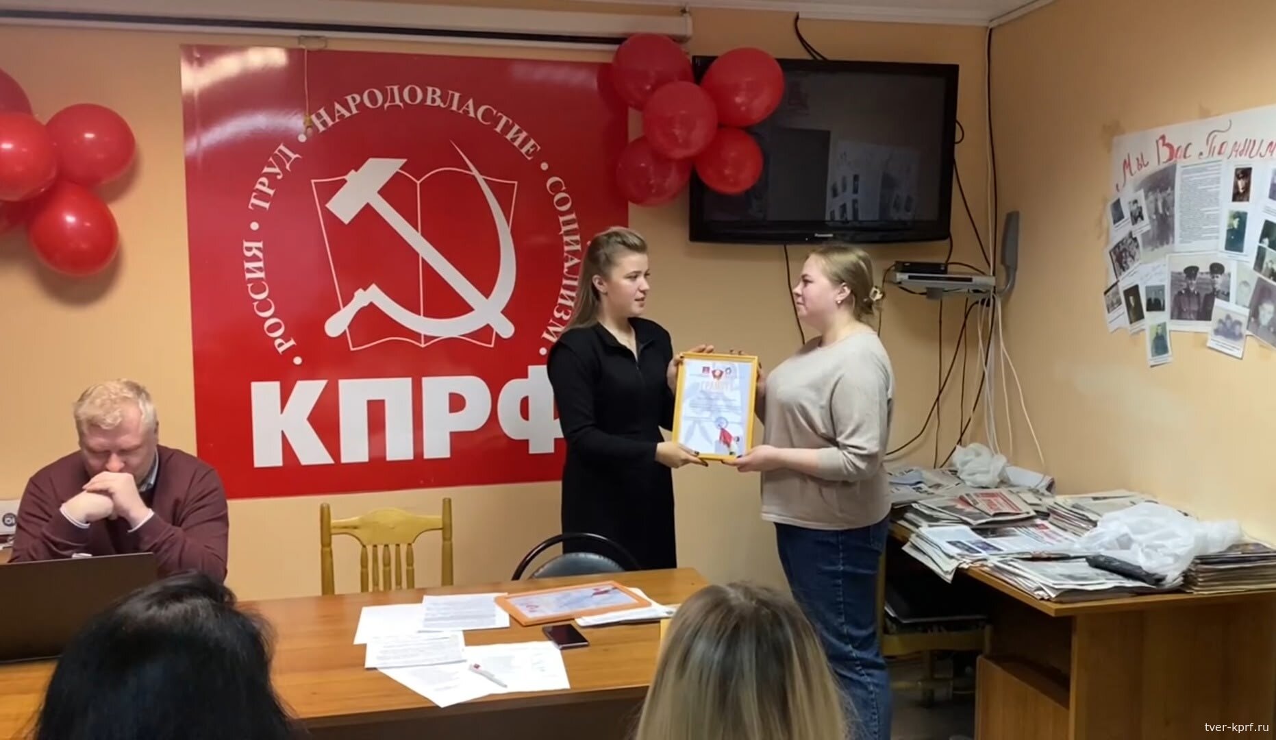 Первый секретарь Тверского обкома комсомола Ольга Тимошкевич рассказала о прошедшей в Государственной Думе выставке, посвященной 150-летию со Дня рождения М.И. Калинина организованной фракцией КПРФ и депутатом Госдумы от Тверской области О.А. Лебедевым, в которой тверские комсомольцы приняли активное участие.