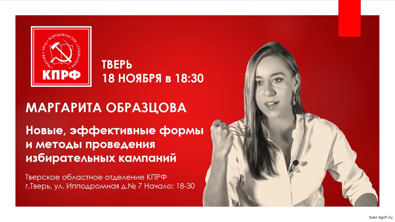 18 ноября в 18:30 в помещении Тверского областного отделения КПРФ состоится семинар на тему: «Новые, эффективные формы и методы проведения избирательных кампаний».