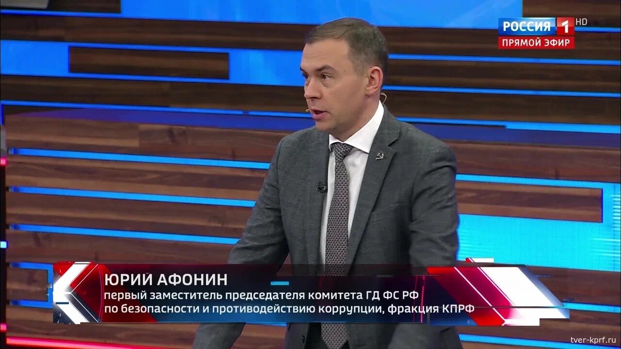 Первый заместитель Председателя ЦК КПРФ Ю. В. Афонин принял участие в программе «60 минут» на телеканале «Россия-1».