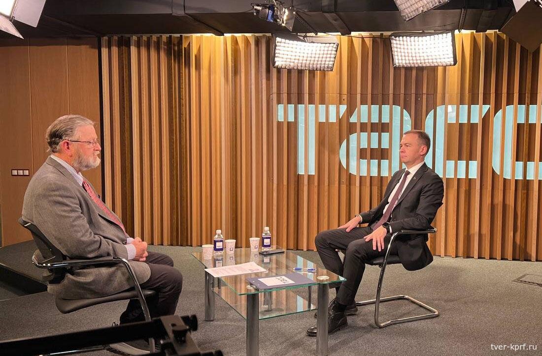 Первый заместитель Председателя ЦК КПРФ Ю. В. Афонин на площадке ТАСС побеседовал с экс-аналитиком ЦРУ Ларри Джонсоном в рамках медиафорума Международного «Клуба Народного Единства».