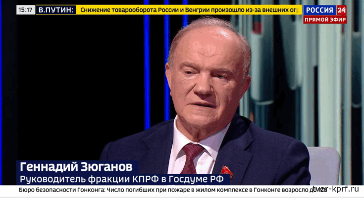 Председатель ЦК КПРФ, руководитель фракции КПРФ в Госдуме Г.А. ЗЮГАНОВ в прямом эфире телеканала «Россия 24».