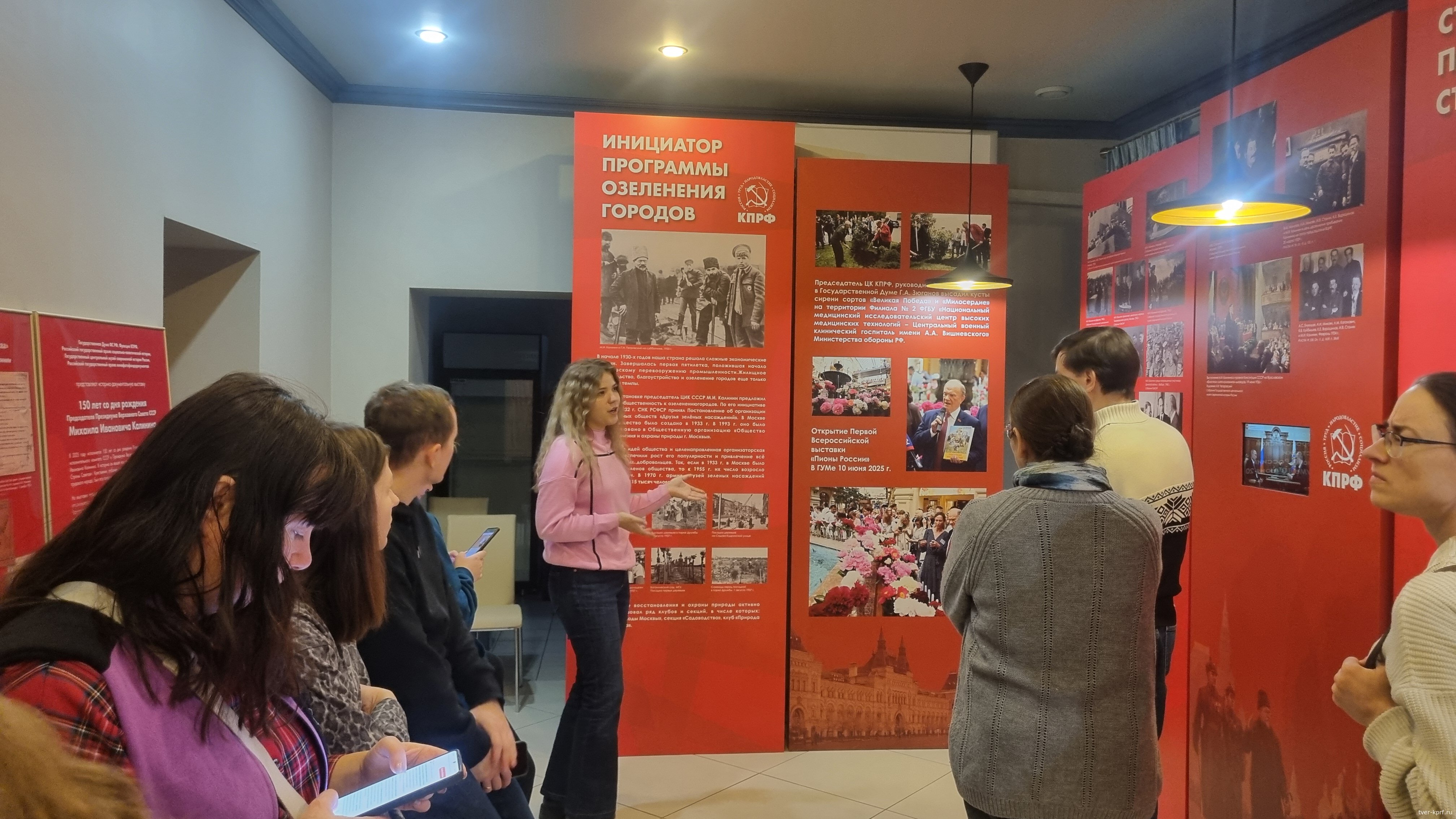 В Законодательном Собрании Тверской области прошла новая экскурсия по выставке, посвящённой жизни и работе Михаила Ивановича Калинина. На сей раз гостями выставки стали аспиранты биологического факультета Московского государственного университета им. М. В. Ломоносова.