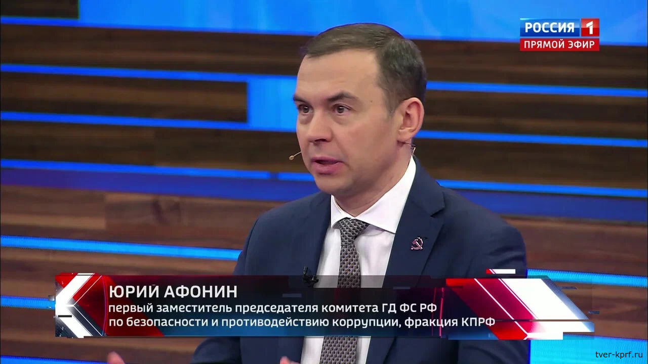 Первый заместитель Председателя ЦК КПРФ Ю. В. Афонин выступил в эфире программы «60 минут» на телеканале «Россия-1».
