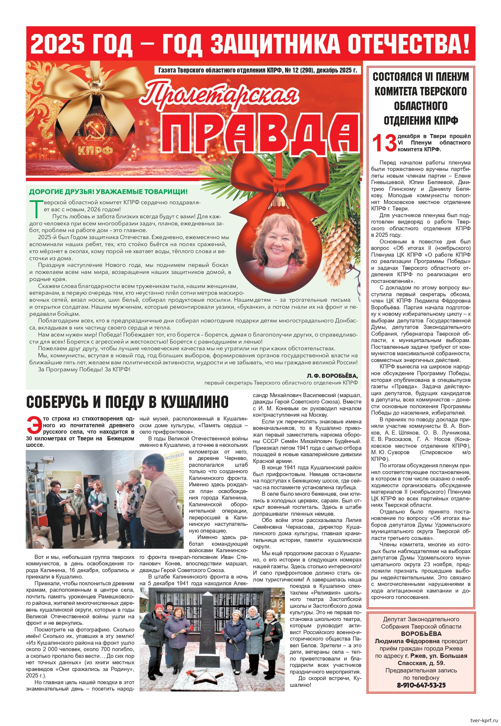 Вышел в свет новый номер газеты "Пролетарская правда" 20:58, 24 декабрь 2025 13 0 pp_dekabr_compressed.pdf(Скачали 3) 3.63 Mb Посмотреть онлайн файл: pp_dekabr_compressed.pdf Читайте также 23.03.2021, 07:44 Вышел в свет новый номер газеты "Пролетарская правда" 5.03.2013, 17:17 Вышел в свет новый номер газеты Тверского обкома КПРФ "Пролетарская правда" 15.07.2016, 12:52 Вышел в свет новый номер газеты "Пролетарская правда" 13.01.2011, 15:04 Вышел в свет первый номер 2011 года газеты Тверского областного отделения КПРФ "Пролетарская правда" 24.01.2025, 11:14 Вышел в свет новый номер газеты "Пролетарская правда" Комментарии (0) Добавить
