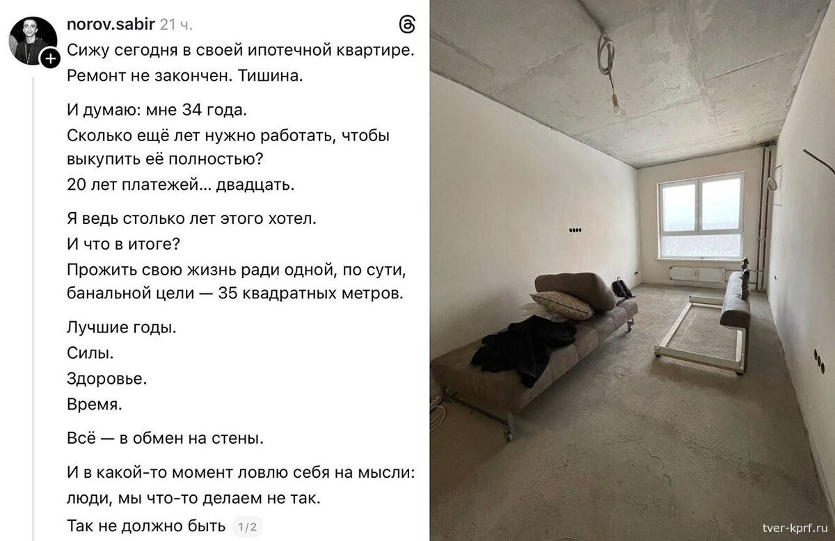 На скрине – очень жизненный пост 34-летнего мужчины, который взял в ипотеку однушку.