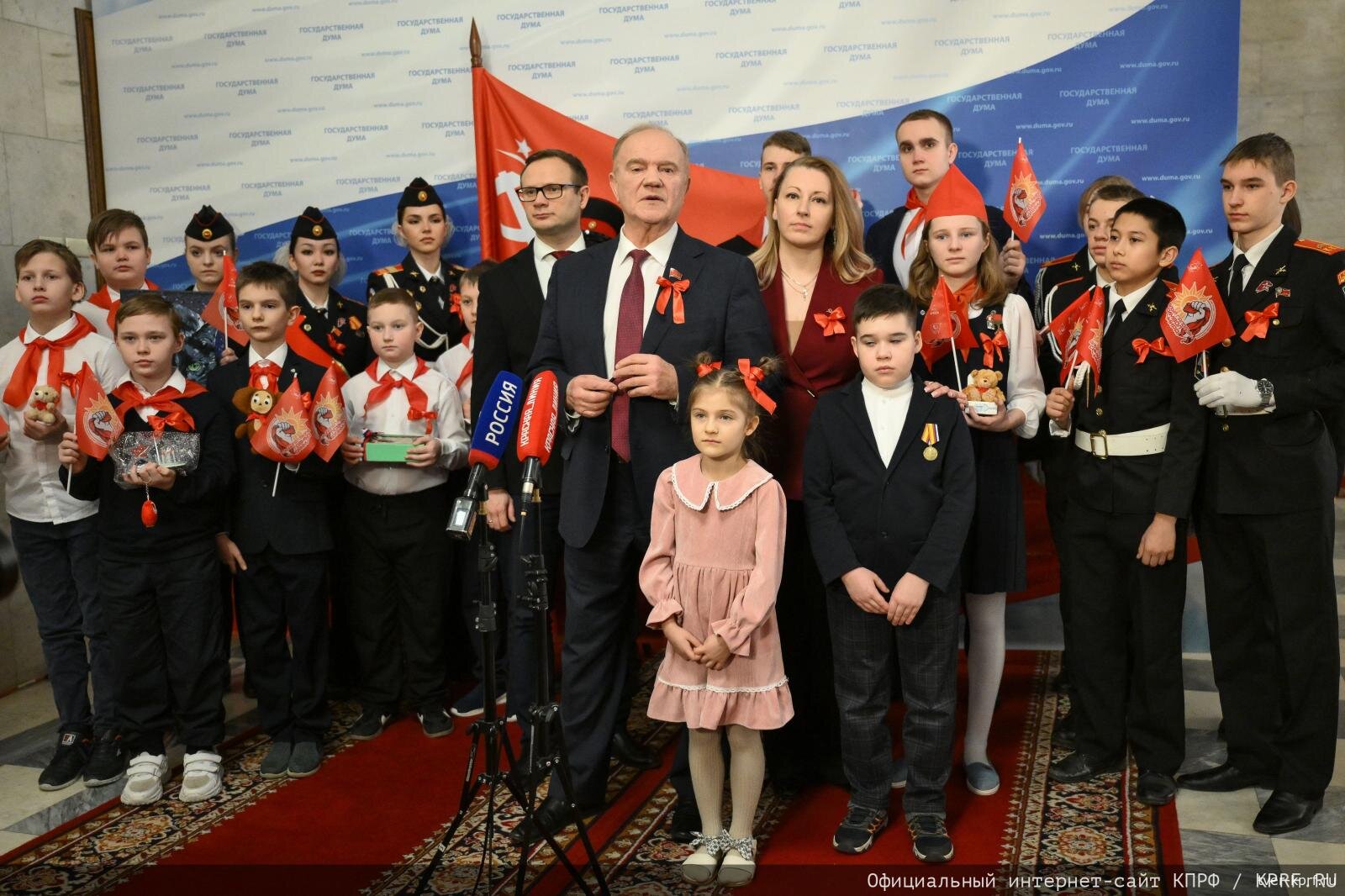 В пятницу, 6 февраля, в ознаменование Дня юных героев-антифашистов, в малом зале Государственной Думы коммунисты и сторонники партии провели торжественное мероприятие. Перед его началом к журналистам обратились представители руководства Компартии во главе с Председателем ЦК КПРФ, Руководителем фракции КПРФ в Государственной Думе Г.А. Зюгановым.