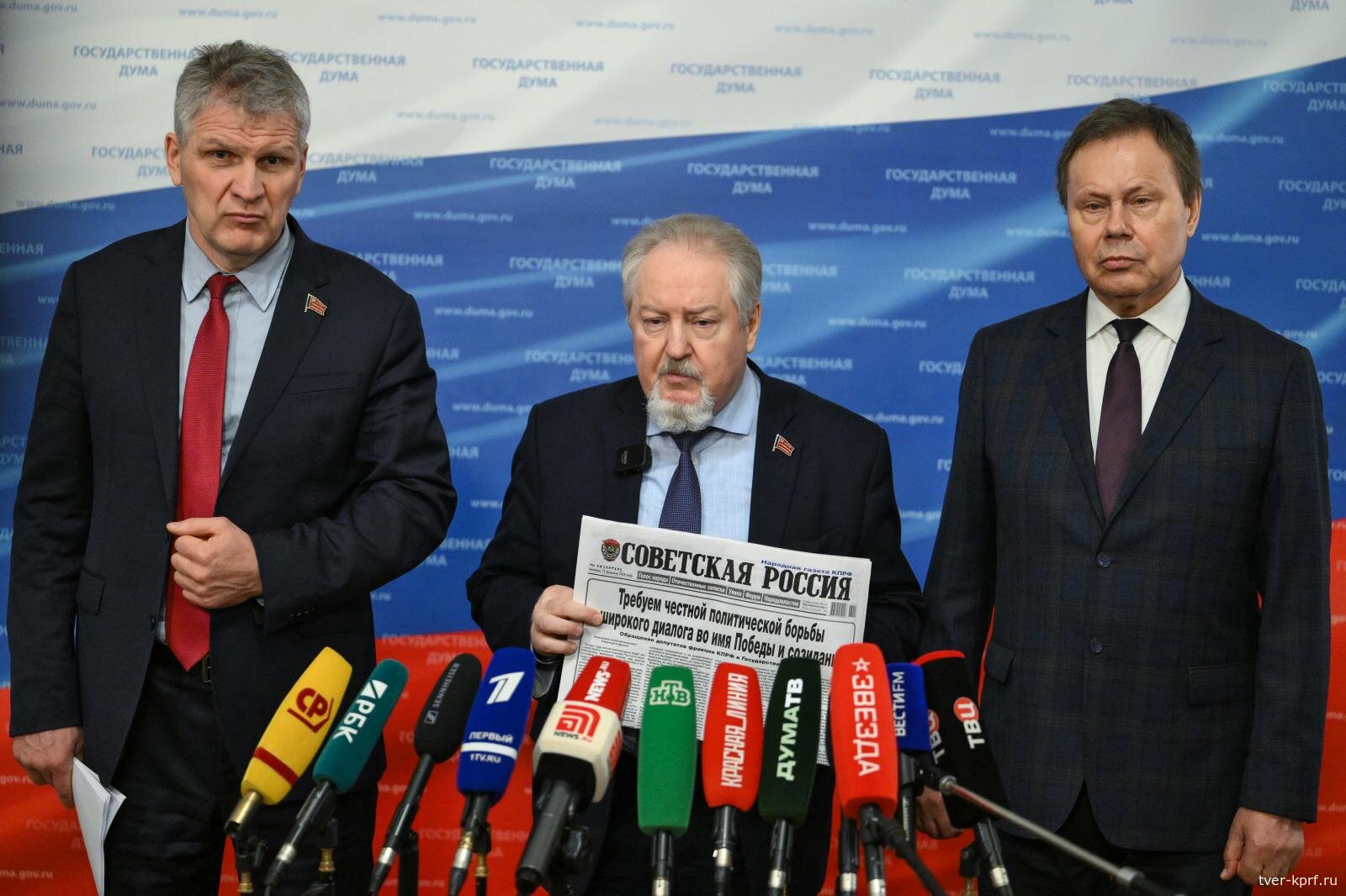 18 февраля, предваряя пленарное заседание Государственной Думы, перед журналистами выступили депутаты фракции КПРФ А.В. Куринный, С.П. Обухов и Н.В. Арефьев.