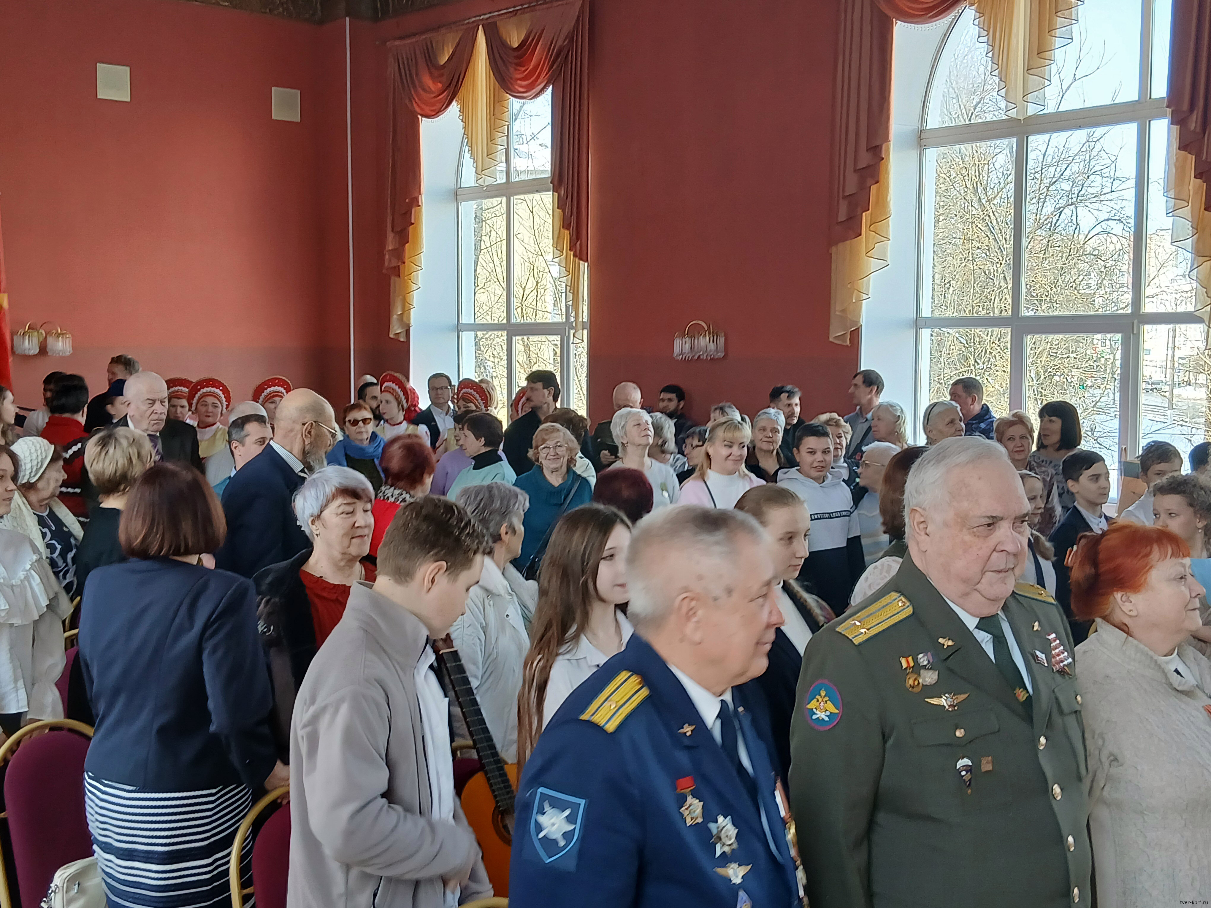 На праздник пришли свыше 120 человек, зал был полон. Среди участников – представители ветеранских и общественных организаций (Совет ветеранов города Твери, Движение в поддержку Армии, «Ассамблея народов России», ZOV-Тверь «За Отечество и Веру», «Дети войны», тверские коммунисты, ветераны ВМФ, ветераны СВО), а также учащиеся школ, артисты и музыкальные коллективы.