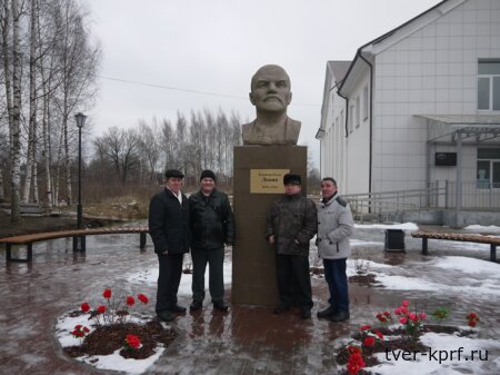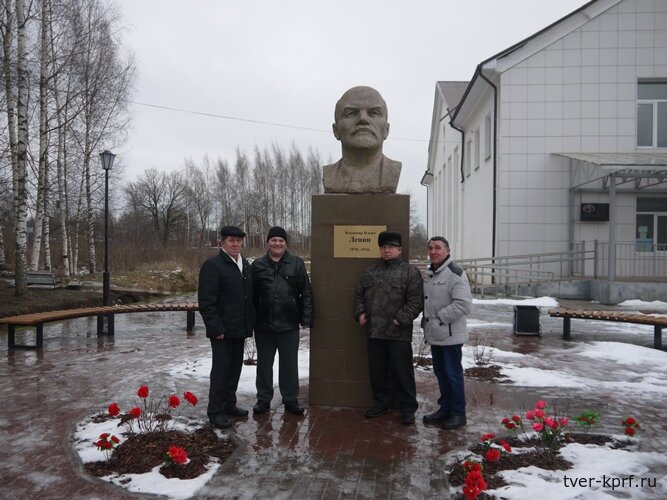 У памятника Ленину в Погорелом Городище (январь 2020 года). На фото: В. В. Шатилин - крайний слева