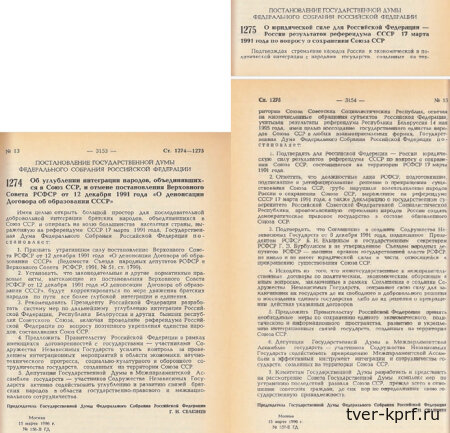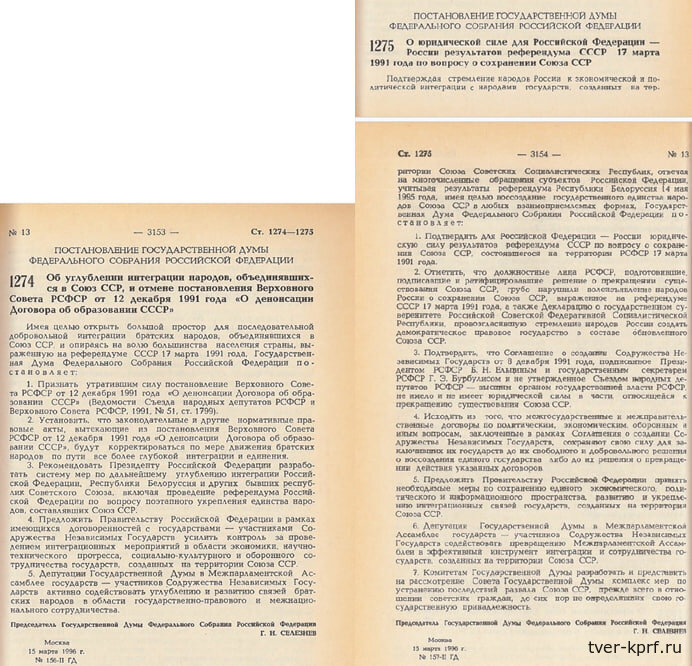 Дата в истории: 15 марта 1996 года по инициативе КПРФ были денонсированы преступные Беловежские соглашения