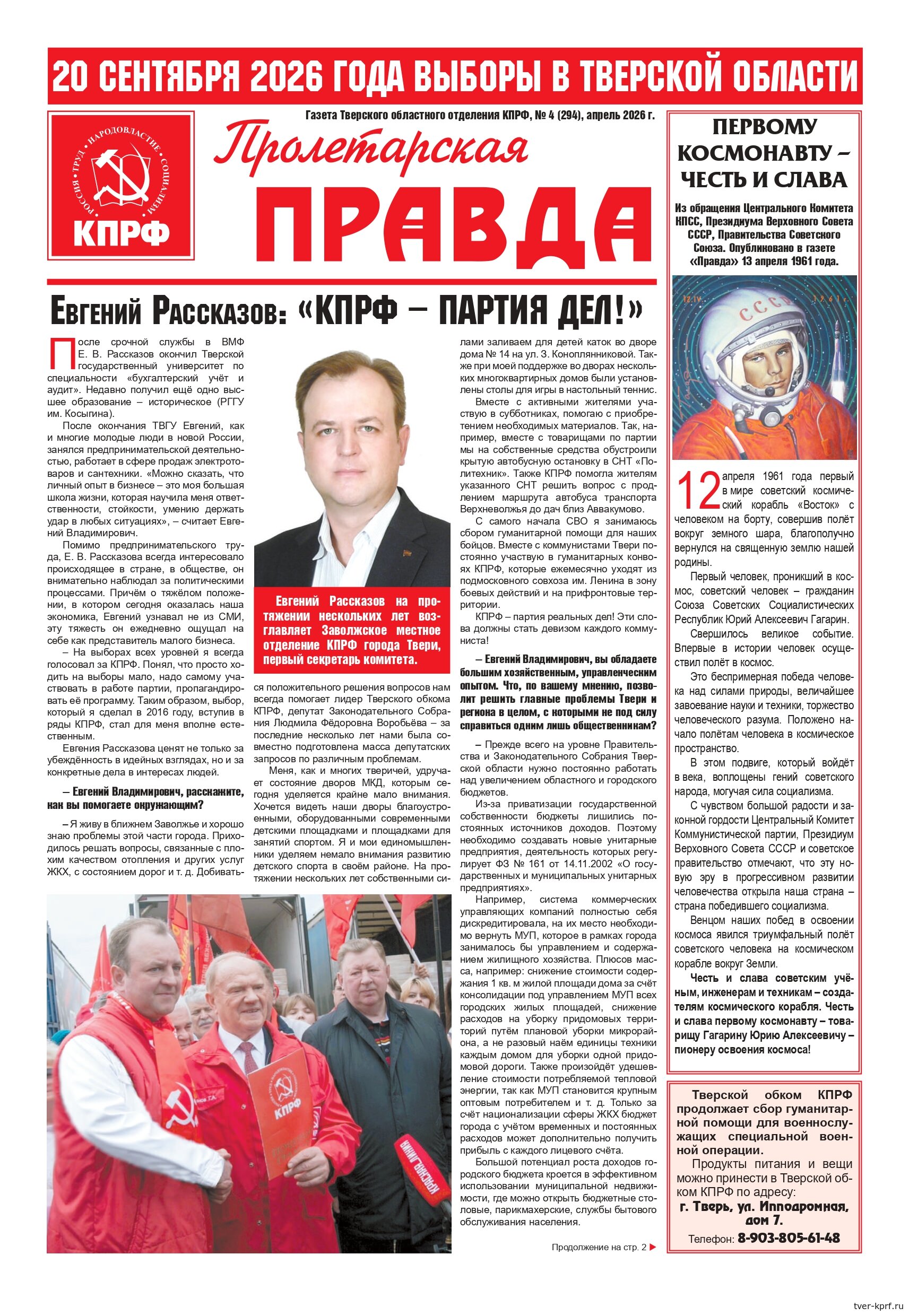 Вышел в свет новый номер газеты "Пролетарская правда"