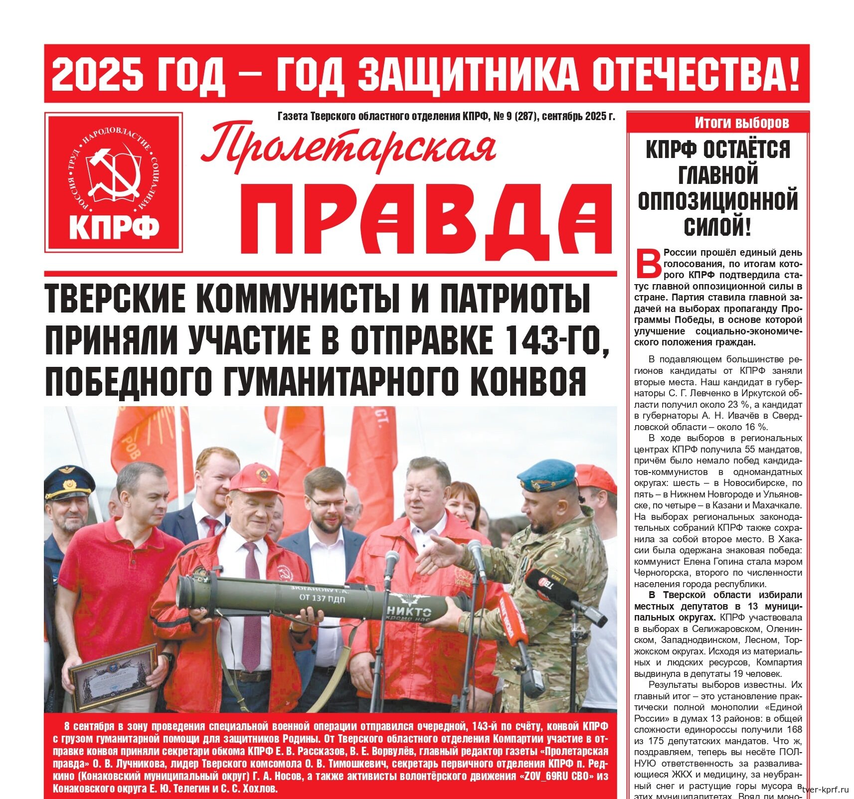 Вышел в свет новый номер газеты "Пролетарская правда"